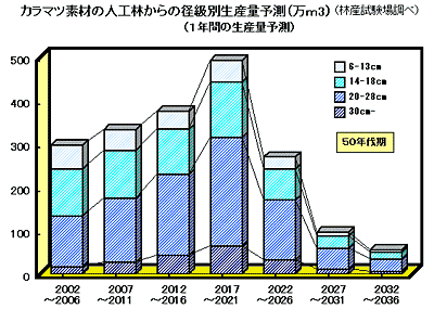 道内の森林資源は、優良天然林資源が減少する一方で、カラマツ、トドマツなどの人工林資源が成熟化しつつあり、質的変化が生じています。この人工林材の有効利用のためには材質、強度などの特性を明らかにする必要があります。